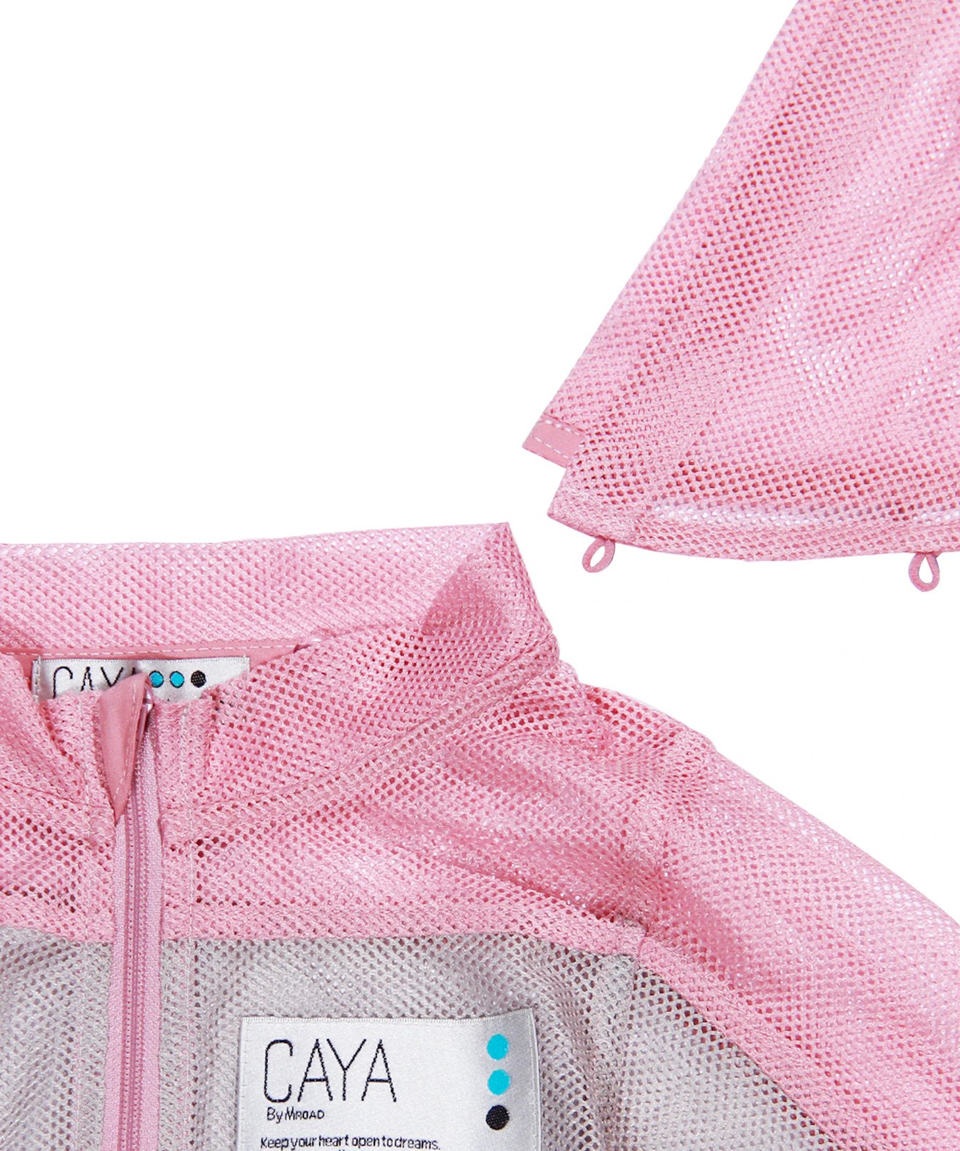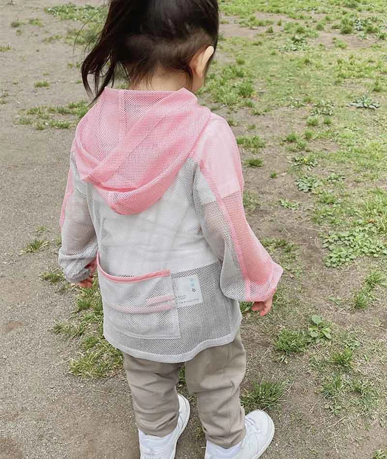 CAYAの中で特に人気があるのが、メッシュパーカー(ポケッタブル仕様)。公園までの散歩やキャンプでの外遊びなどはもちろん、さまざまなロケーションで活躍できるアイテムだ。