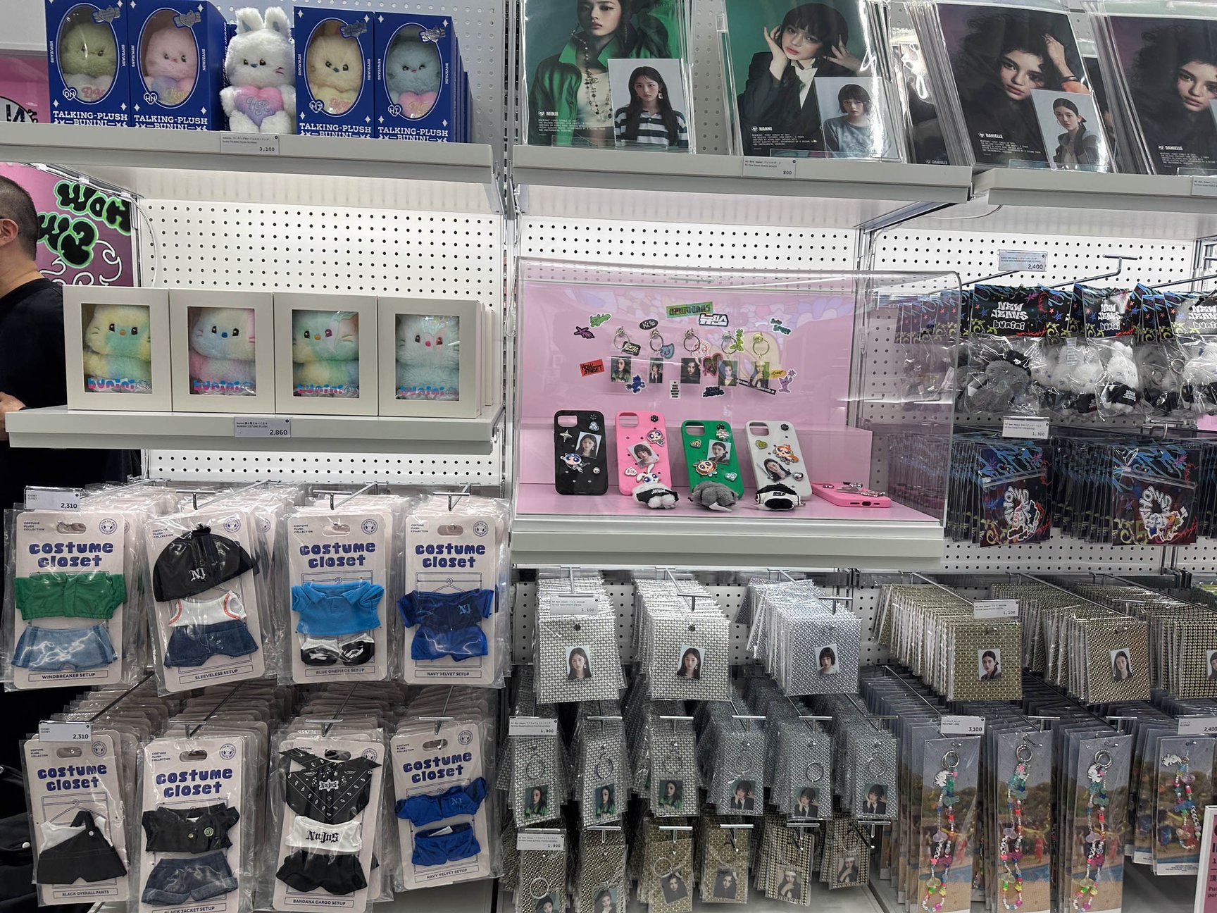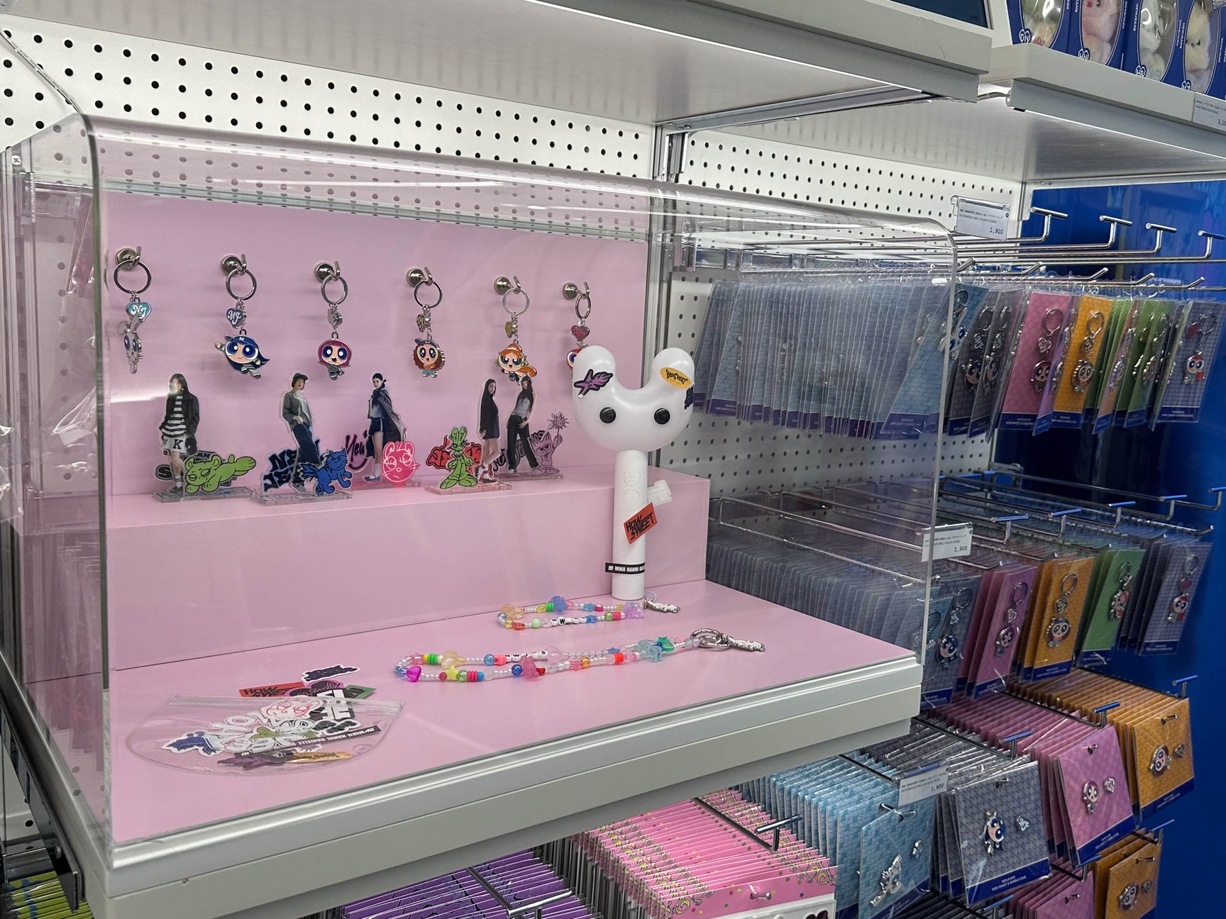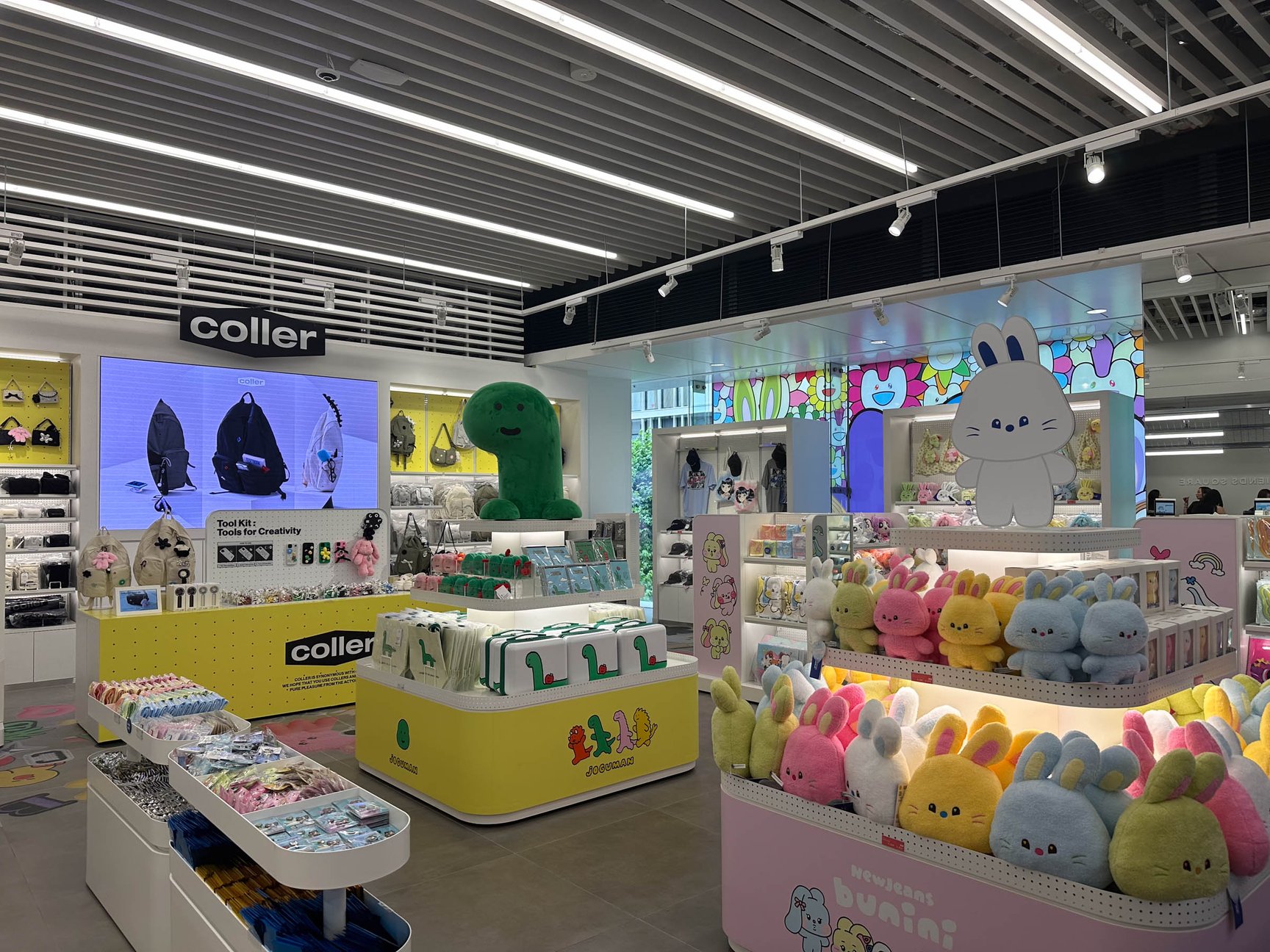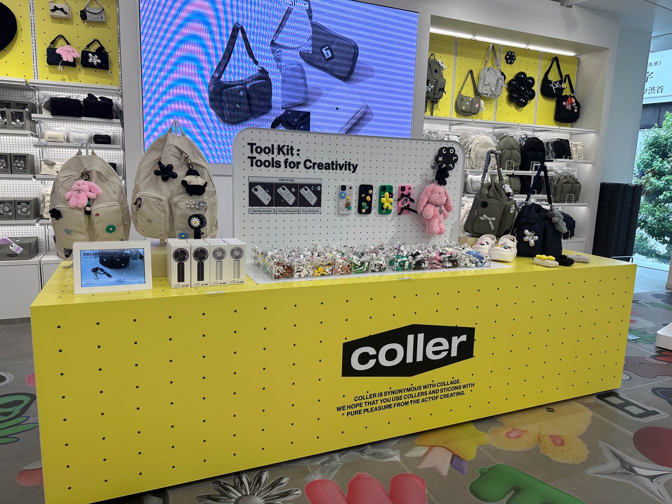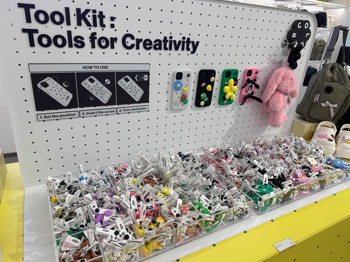 2階には、バッグやスマホケースなどの本体に「スティコン」と呼ばれるパーツを取り付けることでカスタマイズできるアイテムを展開するブランド「コレ(COLLER)」の初の常設店舗が登場。今回が日本初上陸で、NewJeans関連のスティコンも期間限定で扱う。