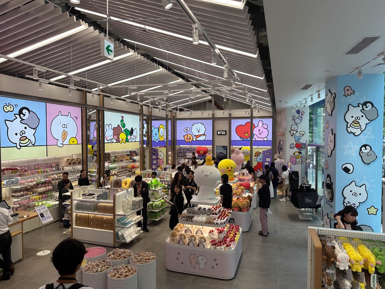 LINE FRIENDS SQUARE SHIBUYAは、渋谷PARCOの斜向かいに位置。「多くの人が集まる広場のように、様々なキャラクターとファンが集って欲しい」という想いから設計されたという同店は、地下1階から2階までのコンセプトの異なる3フロアで構成された。総床面積は990平方メートルで、世界中のラインフレンズストアの中でも大型の店舗となった。国内だけでなく、インバウンド客の来店も多い“トレンドの発信地”渋谷を起点に、全世界のファンが集う「ホットプレイス」になることを目指すという。