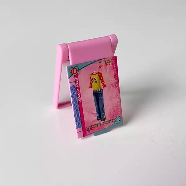 デザインが2種類あり、Aはピンクで「ピタTガール」のカード、Bはブルーで「キラリンハートピアス」のカードデザインです。