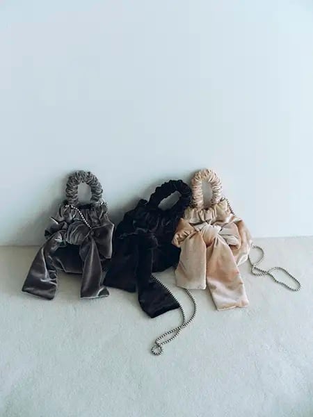 「2wayベロアリボンバッグ」(税込1万1000円)は、大きなリボンとベロア素材で、コーデのアクセントにうってつけ。