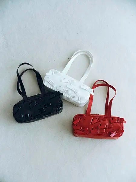 リボンやエナメル?ベロア素材を用いた、ちょっぴり甘いムードただようバッグを、コーデのアクセントにしてみませんか?