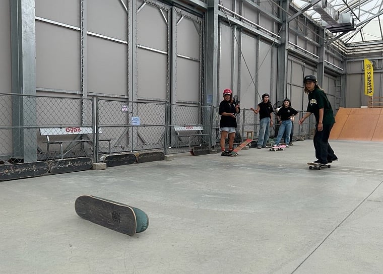 屋内?屋外スケートパーク「ムラサキパーク立川立飛」(東京都立川市)併設店舗の販売員が、空き時間にスケートボードなどを楽しんでいる。店舗の連帯感が高まる効果があるほか、日々の接客にも生かしている。