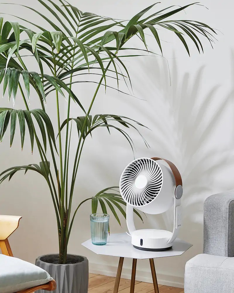 わずか1.7kgという軽量と、置く場所を選ばないコンパクトさが魅力の「レオ(Leo)」は、上下左右、自由自在に風を送る3Dサーキュレーター。持ち運びに便利なヴィーガンレザー製のハンドルがアクセントとなるデザインで、愛らしさも感じられる丸みを帯びたフォルムも魅力の1つ。タッチセンサー式のコントロールパネルとリモコンの両方で操作が可能です。リモコンは電池のマグネットで本体に吸着するため、失くしてしまいがちな人もきっと大丈夫。もちろん静音性にも文句なし。