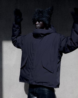コレクションでは、ブランドの代名詞ともいえるブラックベースのアイテムを中心に展開。チェスターコートやテーラードジャケット、アノニマスな雰囲気のフーディーのほか、フラワーパターンをあしらったシャツやパンツなどを披露した。また、ショーの終盤には約20年ぶりとなるドラえもんとのコラボレーションTシャツが登場した。