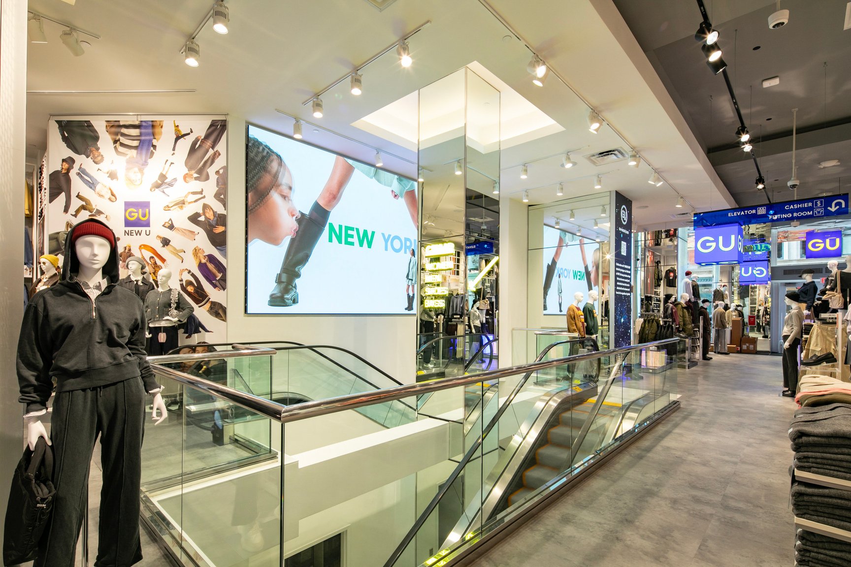 ファッションやカルチャーの中心であるグローバル都市ニューヨーク?ソーホーのメインストリートに面する同店舗は、地下1階と地上1階の2フロア構成で、売場面積は約945平方メートル。メンズとウィメンズウェアのほか、シューズやバッグなどのグッズを含めたトレンド商品を取り揃え、店内には約100体のマネキンを用意し幅広いスタイリングを提案している。また、通行人の目をひく大きなロゴキューブや、ジーユーブランドを紹介する大きなデジタルサイネージも設置し、グローバルファッションブランドを目指すジーユーの最新情報を、地元の人とソーホーを訪れる世界の人へ向けて発信していく。