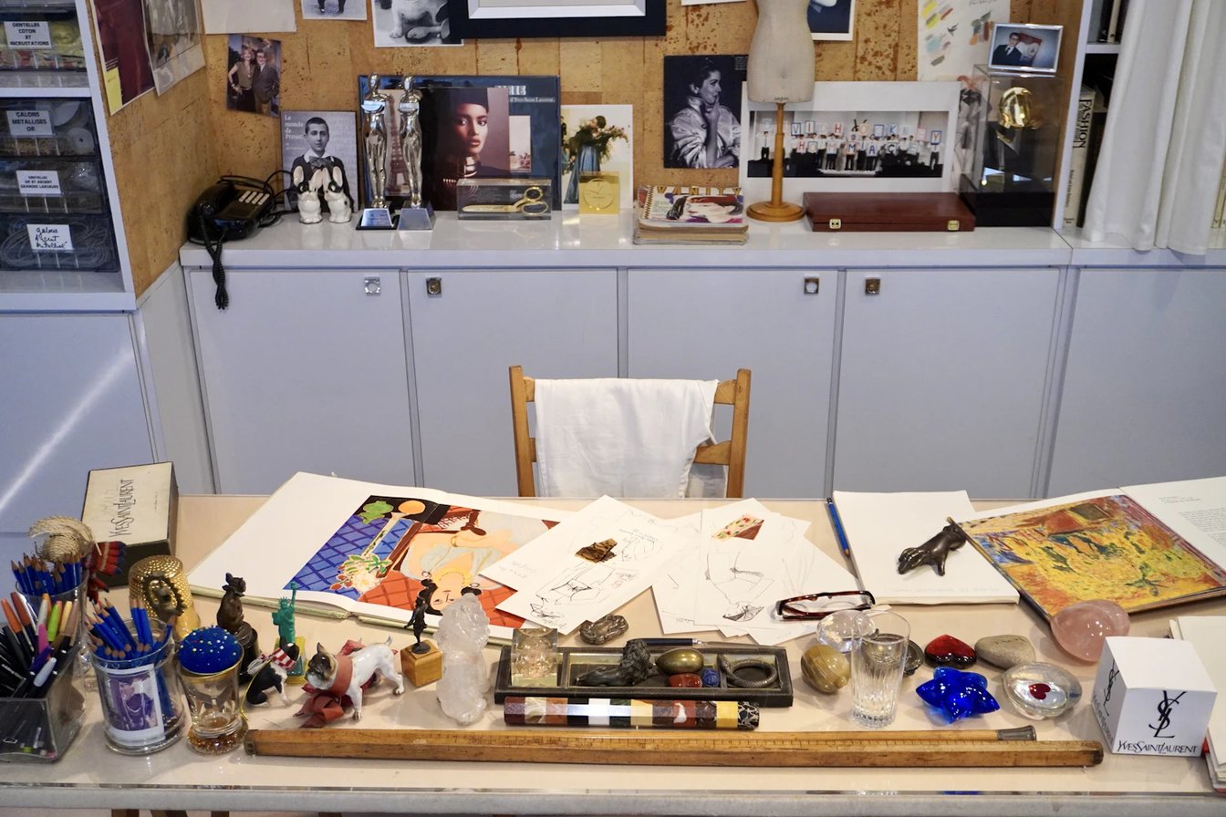 これらのスケッチから、イヴ?サンローランの各コレクション制作が始まる。選ばれたデザインはアトリエ長に配布され、チームはトワル(試作品)を作成し、デザイナーが確認する。
