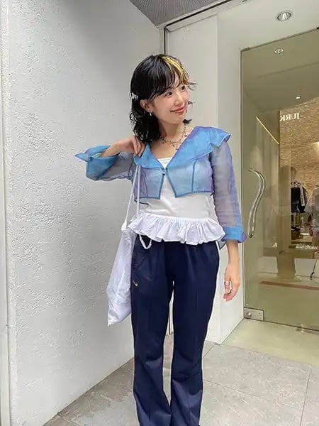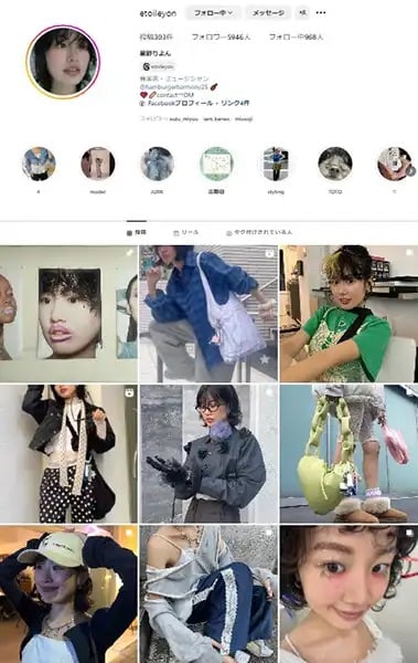 サロンモデルとして活動する傍ら、東京?表参道のアパレルショップ「JURK SHOP TOKYO(ユルク ショップ トーキョー)」でスタッフとして働いている。Instagramでは、ファッション感度の高いおしゃれ上級者さんとしても注目される存在。“心地いい違和感”のあるファッションを追求し、1年のうち350日は違うコーデをするのだとか。