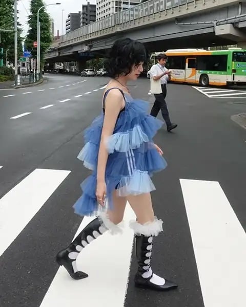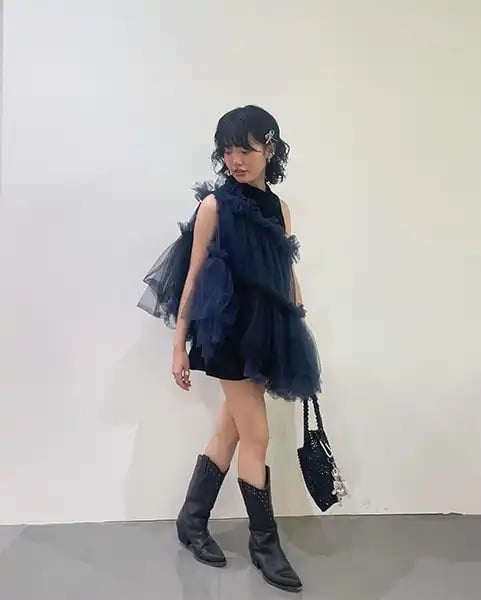 ローカットの靴だけでなく、ブーツに合わせてチュールだけ見せるのもかわいいですね。