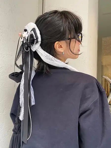 レースが付いていることと、ロングヘアに見えるくらい長いリボンがお気に入りで、つけるだけでインパクトがあるんです。