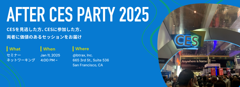私たちは1月11日(土)、btrax SFオフィスで「CES 2025 報告会: After CES Party」を開催します!当日は、デザインリーダーたちがCES 2025での注目トピックスや最新トレンドを共有します。ネットワーキングや意見交換の場としても最適です!