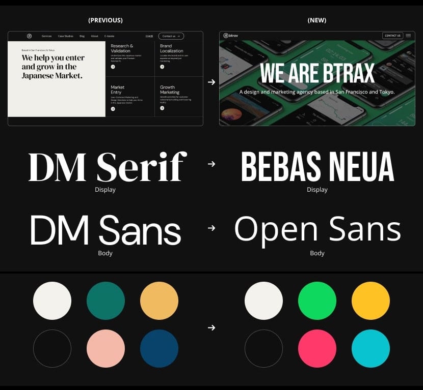 今回のアップデートでは主に、利用するタイプフェイス、カラーパレット、そしてキービジュアル要素の更新を行い、アメリカ西海岸のデザイン会社らしい、よりイキイキとした雰囲気を採用。