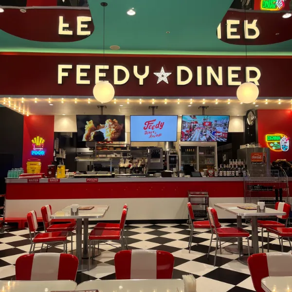 営業時間:Feedy Dinerは11:00~22:00(ラストオーダー21:30)、Feedy Arcade(アミューズメント施設)は9:00~23:00
