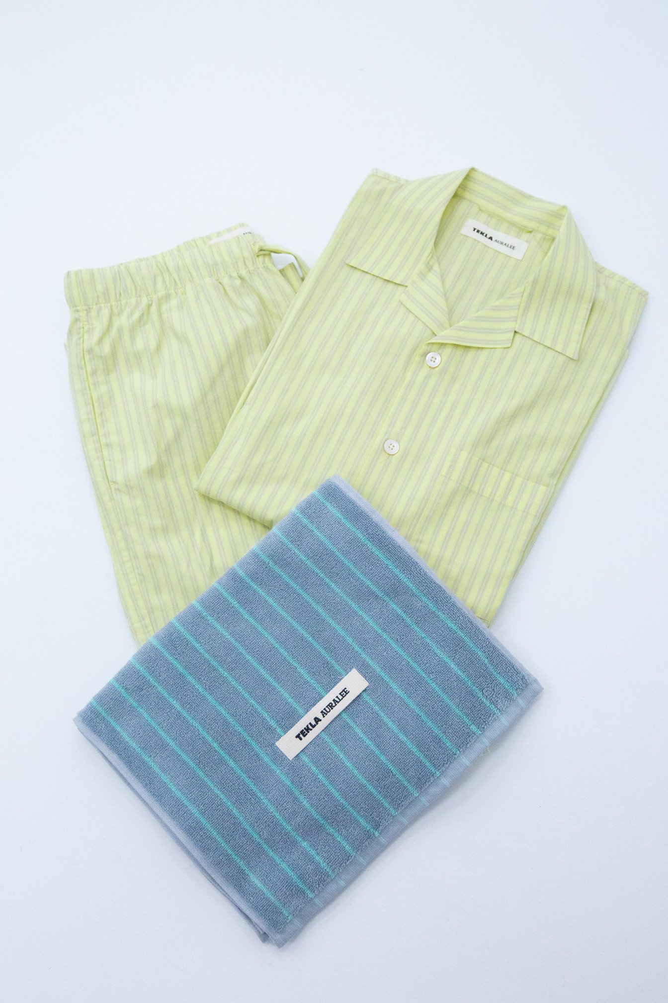橋爪:デザイナーの岩井良太さんがサウナ好きということもあると思うんですけど、まさかテクラとコラボレーションするとは思っていませんでした。テクラの品質の良さは知っていたので楽しみで、パジャマの上下セットと温泉タオルの3点セットを買いました。
