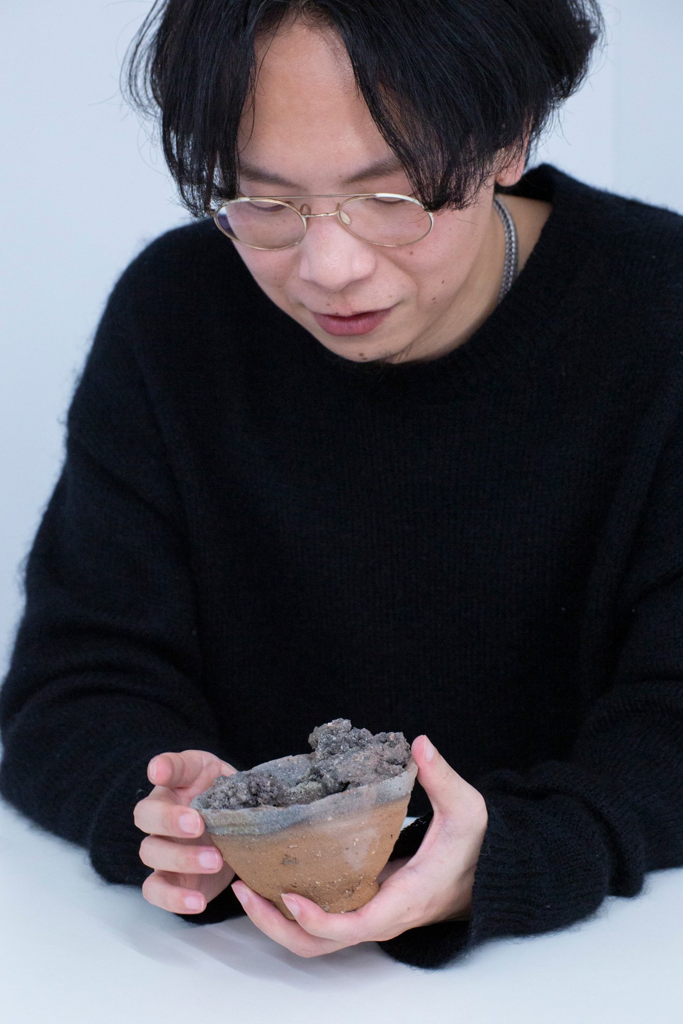 橋爪:いえ、普通の碗も作っていらっしゃるので、これはイレギュラーな作品だと思います。1万年続く、人々の営みとしての焼き物に目線を向けて「自分ならどういうことができるのか」「土に触れるとはどういうことなのか」ということを考えている作家さん。1998年生まれで、どういう人かも全然知らなかったんですけど一目惚れして買った器です。器という名のオブジェのような作品。