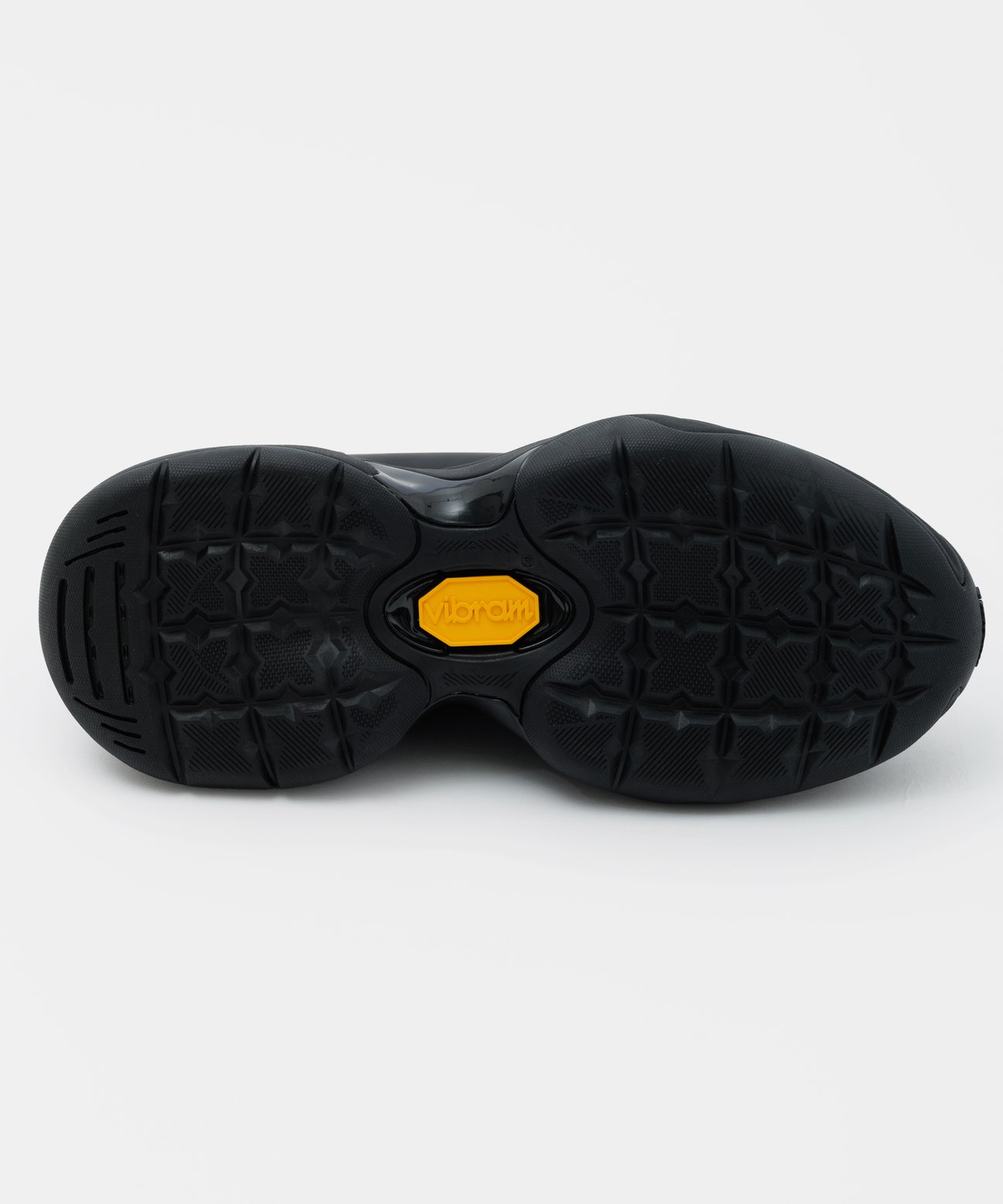 同別注では、オーエーオーの人気モデル「FOUNTAIN」をベースに採用。パーツをより表情のある凹凸素材に組み替え、モダンなデザインと高い実用性を兼ね備えた一足に仕上げた。アッパー部分には、独特のツヤと深いシボが特徴のカウレザーと、高い通気性とソフトな履き心地を提供するハニカム構造の3Dメッシュを採用。タン部分のパッチをレザーに変更し、ロゴマークをエンボス加工であしらった。ソールには、厚さ5.8cmのVIBRAM社の「PROJECT X」を採用。サイズは1cm刻みで22?28cmまでを用意する。価格は4万9500円。