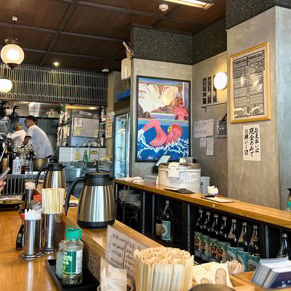東京?学芸大学にある鳩乃湯は、入口の白いのれんが特徴的。15時からオープンしているので、早い時間から飲みたい時には持ってこいかもしれません。