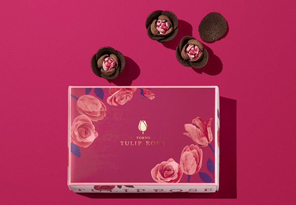 新作の「チューリップローズ ショコラベリー」(4個入り:税込1026円/6個入り:税込1458円)は、ココア香るラングドシャに、バラのアロマを秘めたエクアドル産カカオのショコラクリームと、甘くてみずみずしいフランボワーズのショコラクリームを添えて、より一層香り高く仕立てられています。