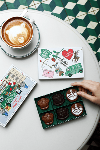 ラルフズ コーヒーからお目見えしているのは、ラルフズ コーヒーのアイコニックなモチーフ『ラルフズカップ』『バリスタベア』に、新モチーフ『ラテアート』が加わった「ボンボンショコラアソート」(6P:税込3672円)。