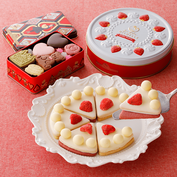 ホールケーキをイメージした華やかなデザインの缶は、プレゼントに喜ばれること間違いなしですね。