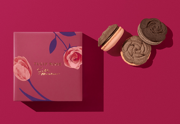 サブレ?マカロン?ガナッシュの3つの食感が絶妙にとろけ合う「チューリップローズ サブレマカロン」(3個入り:税込1188円)。