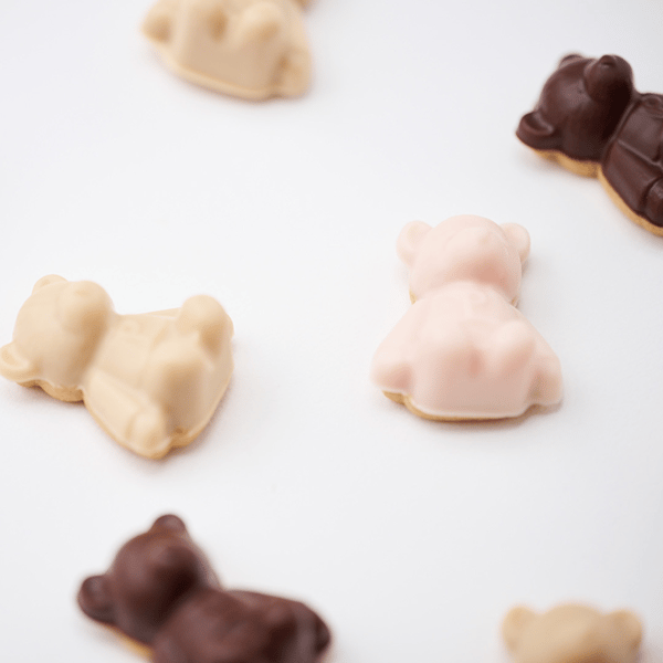 ピンクとベージュのベアチョコには濃厚でクリーミーなホワイトチョコレートを、ブラウンには甘さ控えめで深みのあるビターチョコレートが使用されています。