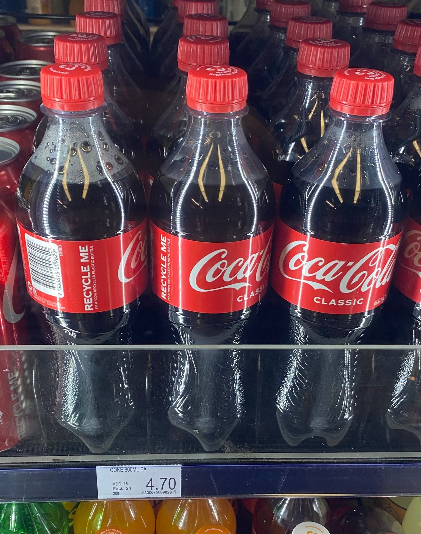 メルボルンのコンビニのコーラの値段は、4.7ドル!(約450円)値段を確認しないで買い物するとレジでびっくりします。
