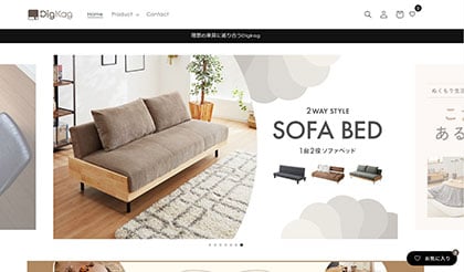 現状、展開している専門型ECの内容としては、ギフトやインテリアなどがある。中でも特に調子が良いのは「DigKag(ディグカグ)」(画像)という家具を深掘りしたサイト。同サイトについては、今のモールなどのトレンドとは逆行していて、大型家具を専門にしているという。爆発的に売れているというわけではないものの、コンスタントに毎月数百万円以上の売り上げが取れるようになっているようで、「ここは、何千点もの商品を載せるのではなく、限られた商品数だけを載せているので、買う側からすると選びやすくなる」(岡本社長)とその利点を語った。
