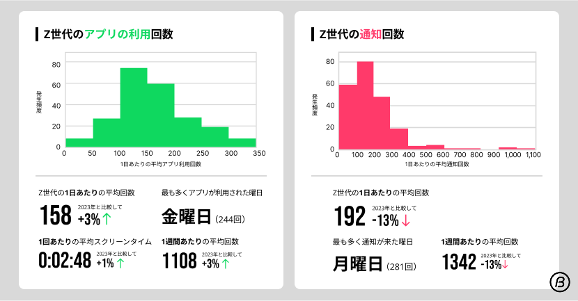Z世代は、通知が多すぎず、日常生活の妨げにならないアプリやサービスを好むようになったとともに、選別したアプリ?サービスからの通知は積極的にピックアップしている。