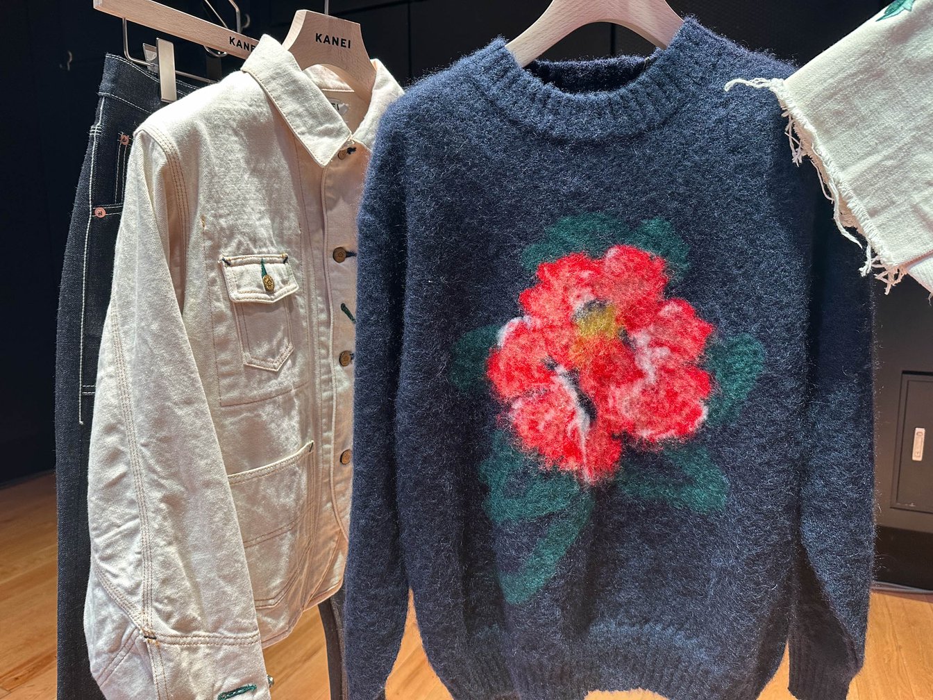 歌川広重の「東京北沢牡丹」を引用したモヘアニット(4万9800円)