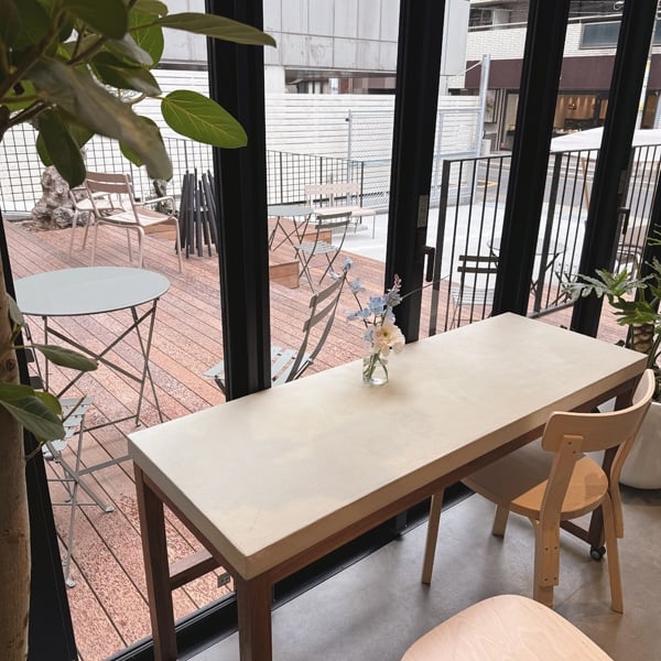かわいいお花に囲まれながら、カフェでゆったりと過ごせますよ。
