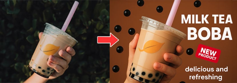 写真とコピーを元にAIで自動生成された広告画像 (右)