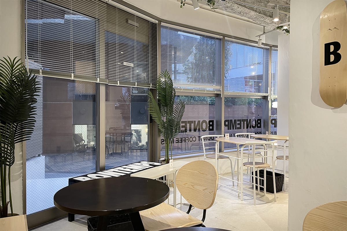 原宿駅から竹下通りの中程まで進み、右の小道に入ると現れるのが「BONTEMPS(ボンタン)東京原宿店」。アパレルショップが数多く立ち並ぶエリアにあって、「BONTEMPS」 の外装もそれと見間違えそうなストリート感あるデザインが目をひく。