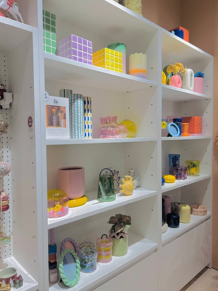 ディスプレイに並ぶ色とりどりの春色インテリアは、オランダ?アムステルダム発ブランド『&Klevering(アンドクレベリン)』のもの。