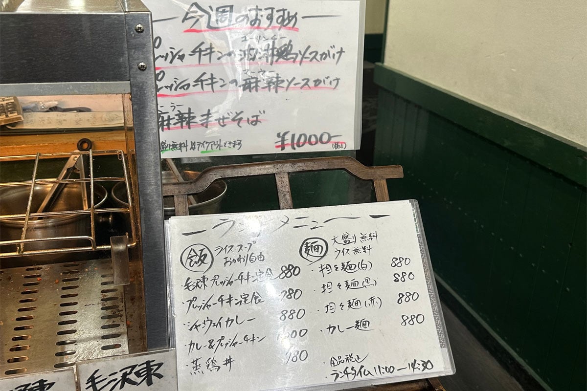 編集部がリアルに食べているランチを、気ままにサクッと紹介する「オモハランチタイムス」。取材の途中、キラー通り沿いを歩いていたら「毛沢東プレッシャーチキン」というインパクト抜群のメニュー名とビジュアルが目に入ってしまった…揚げ物は控えていたのだが、どうしてもその魅力に引き寄せられて、看板に誘われるまま、店内へと足を踏み入れていた。