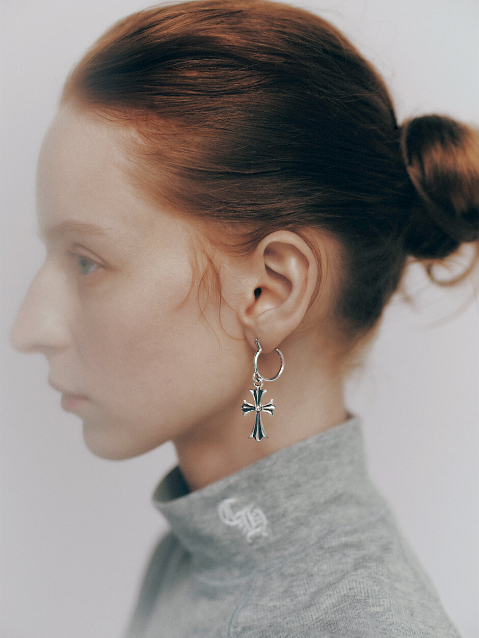 top ¥85,800, earring (each) ¥149,600 by CHROME HEARTS CHROME HEARTS TOKYO
