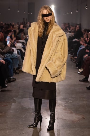 そのほか、ボリュームのあるファーのコートやショートジャケットで上半身を強調したスタイルも増えている。