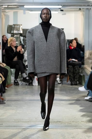 25~26年秋冬デザイナーコレクションは、80年代調のパワフルな女性像に焦点が当たった。女性の前向きな強さを象徴するのは、パワーショルダーのアイテム。テーラードジャケットをはじめ、ドレスやセーターなどさまざまなアイテムで表現されている。世界でジェンダー平等や女性の地位向上が叫ばれるなか、女性の社会進出が進んだ80年代に着目した。