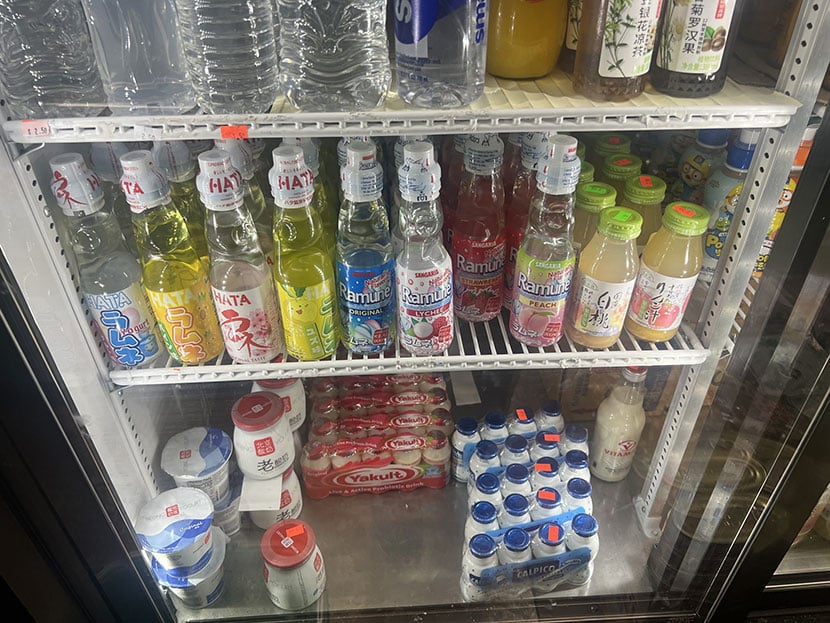 サンフランシスコのアジア系スーパー店舗内のドリンクコーナー