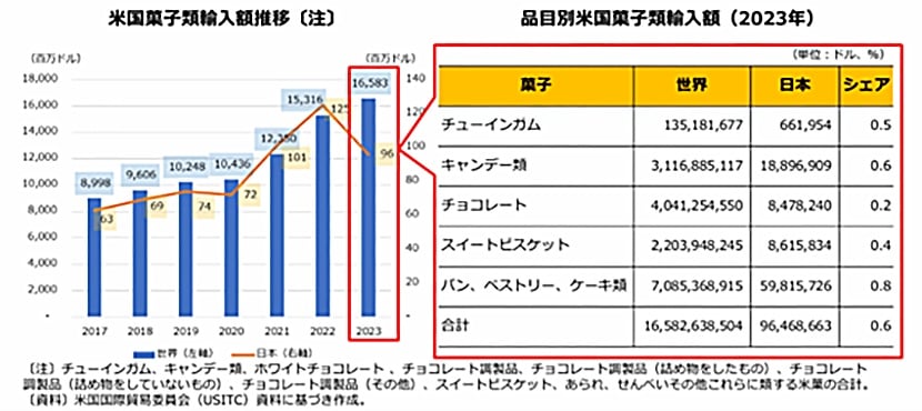 米国における菓子類輸入額も増加している(リンク: 出典)