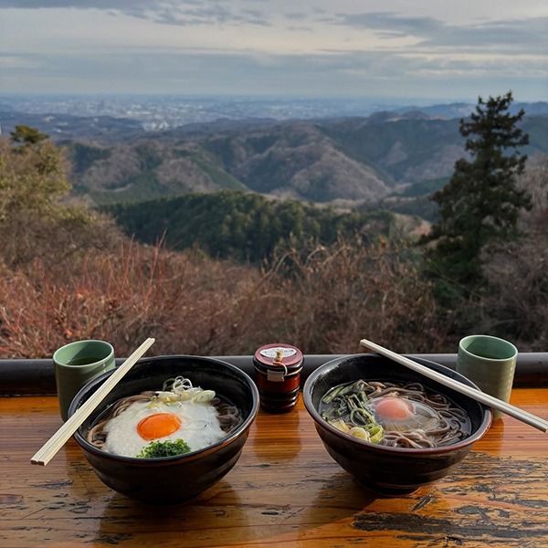 山頂付近には、そばが食べられるお店もあります。きれいな景色のなかで食べるご飯は、いつも以上においしく感じるはず…!