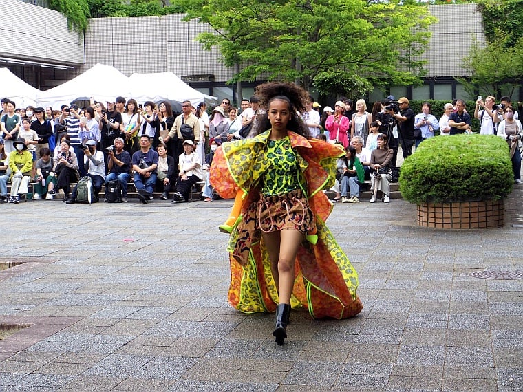 繊研plus大阪文化服装学院は6月7日、大阪?長居公園でファッションショーを実施した。ヤンマーホールディングス(HD)と仏?リール市の非営利文化事業単体リール?トロワミルが実施しているテキスタイルとアートを融合した展示会「フュチュロテクスティール7」(7月31日まで)のアピールや来場促進を目指し、同校が協力したもの。同展に隣接した庭園で、同校がショーを企画、ヤンマーHD子会社のわくわくパーククリエイトが運営した。