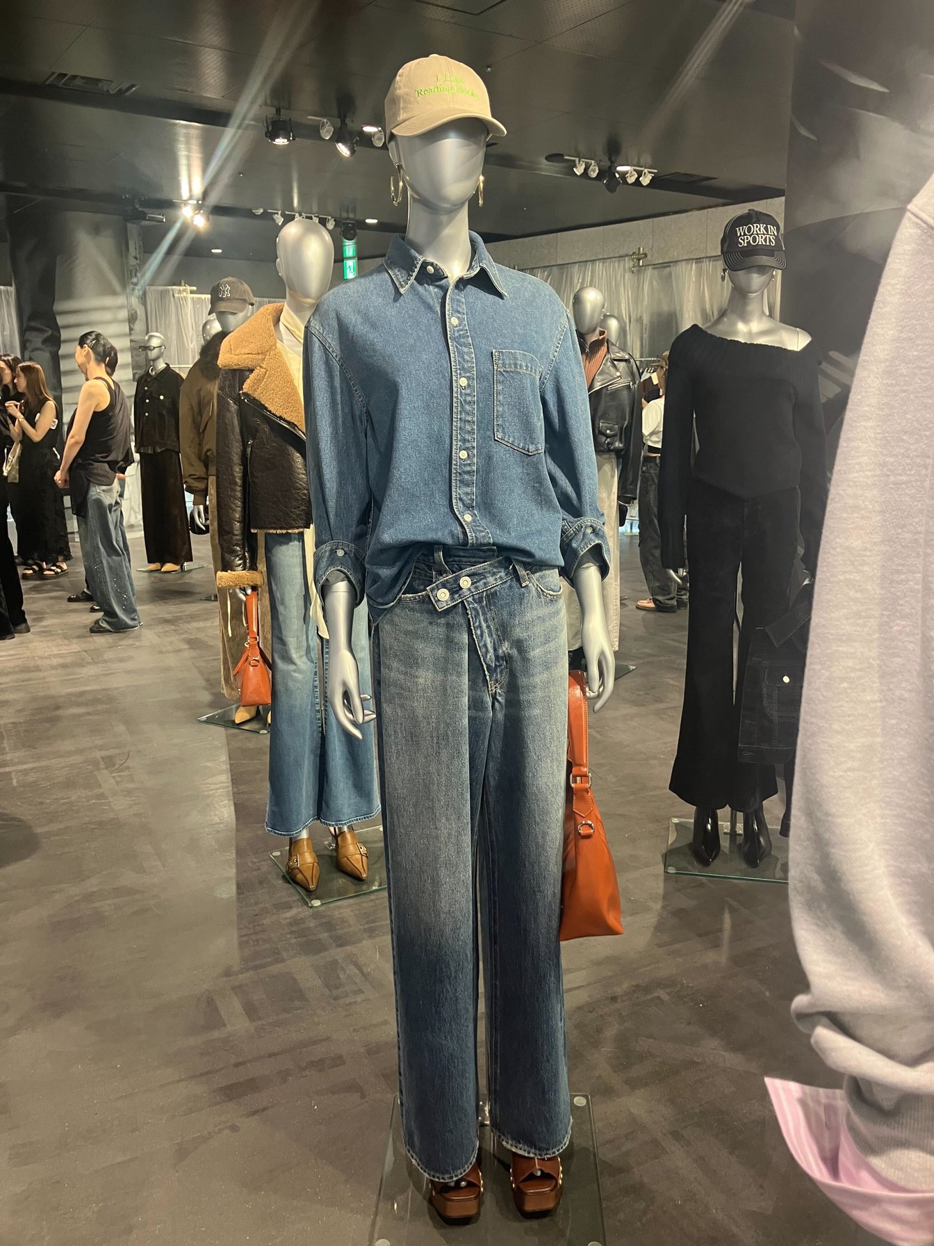 同シリーズは、長らくブランドの定番として安定した人気を維持してきたが、ここ1年ほどで動きが加速。きっかけとなったのは、SNS上での思いがけない"バズ"だ。韓国発の人気アイドルグループの着用アイテムと似たシルエットであるという投稿が話題になり、同ブランドのデニムカテゴリーの中で過去最高の販売実績を記録した。また、これに伴い同シリーズ以外のデニムの売り上げも伸長。段違いのウエストデザインが特徴の「クロス ウエスト ワイド ストレート(CROSS WAIST WIDE STRAIGHT)」の売上は、2025年4月から6月にかけて約1億7000万円で、前年同期比36%増となった。同期間のデニムカテゴリー全体の売上も、前年同期比26.8%増と好調に推移している。