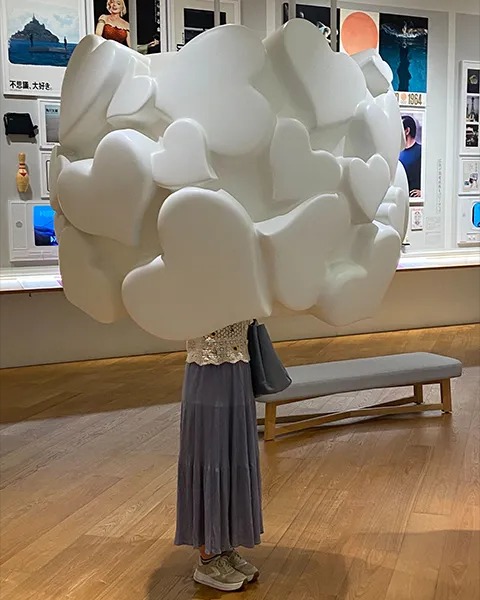 SNSでは、視聴ブース「4つのきもち」で吊るされているモニュメントに、頭を入れて写真を撮るのがトレンドみたい。