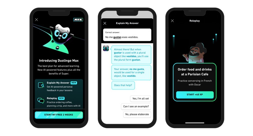 Duolingoでは、ユーザーの過去の回答や学習スピード、苦手分野などをAIが分析し、次に学ぶべき内容や出題の難易度を自動で調整している。