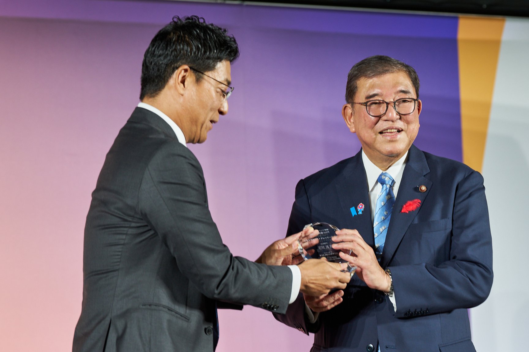 現職の内閣総理大臣としては29年ぶりの受賞となった石破氏は、福井?鯖江のブランド「アイテック(EYETEC)」のメガネを着用して登壇。「内閣総理大臣になってから表彰することは多いのですが、されるのは初めてです」と喜びを語り、「メガネは生活の一部であり、人生の相当な時間をともにするものだと思います。本日このような賞をいただけたことを嬉しく思います」と話した。