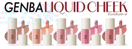肌にふんわり溶け込むようなセミマットな質感が特徴のゲンバリキッドチークは、板状構造のパウダーと球状構造のパウダーを使用することで、ベースメイクを崩さない密着力となめらかな使用感に仕上げた。カラーは、あらゆる肌色になじむミルキーなミュートカラーの5色をラインナップ。自然にぼかしたような発色で、肌の透明感を演出する。