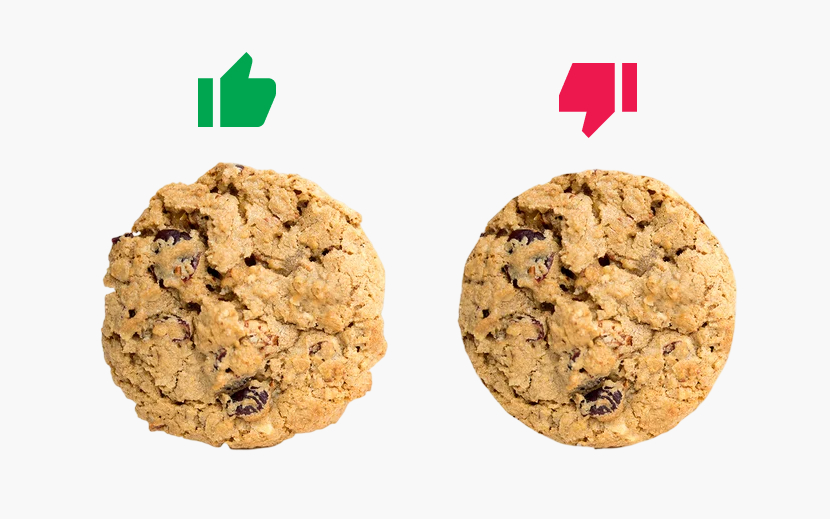 完璧に丸いクッキーと少し欠けたクッキーを被験者に見せて選択させた結果、66%が少し欠けたクッキーを選択した。