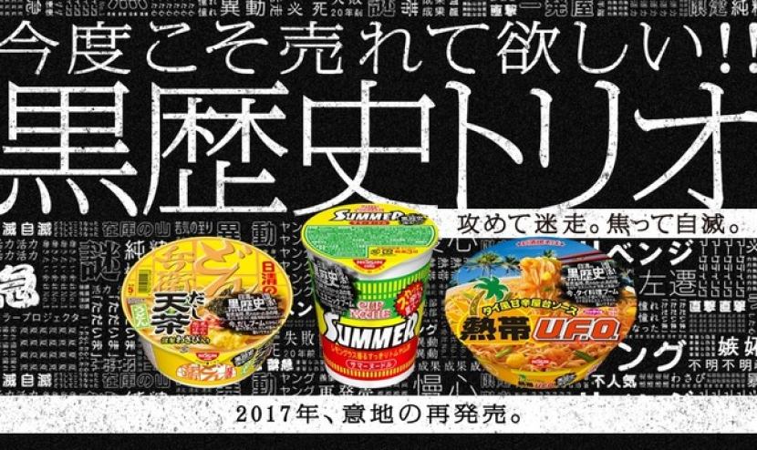 過去に発売したが売れなかった3商品(カップヌードル サマーヌードル、どん兵衛 だし天茶うどん、日清焼そばU.F.O. 熱帯U.F.O.)を「黒歴史トリオ」として復刻販売。