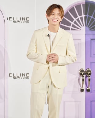 山田は、ブランドをイメージした“オバジカラー”のイエローのセットアップで登場。就任について「この機会を与えていただいたから使い始めたのではなく、普段から実際に使っていたものなので嬉しい。今の僕があるのは、オバジのおかげだなと思います」と、長年担当してくれているヘアメイクアップアーティストに勧められたことをきっかけに、長く愛用しているという。